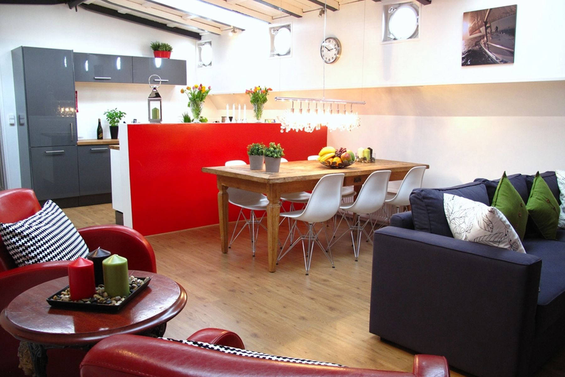 Het tweede appartement bevindt zich in het voormalige vrachtruim van het schip. Er is een badkamer met twee douches en op de gang zijn er twee aparte toiletten. In de zeer ruime en loft-achtige woonkamer staat een royale bank die ook als tweepersoons bedbank te gebruiken is.