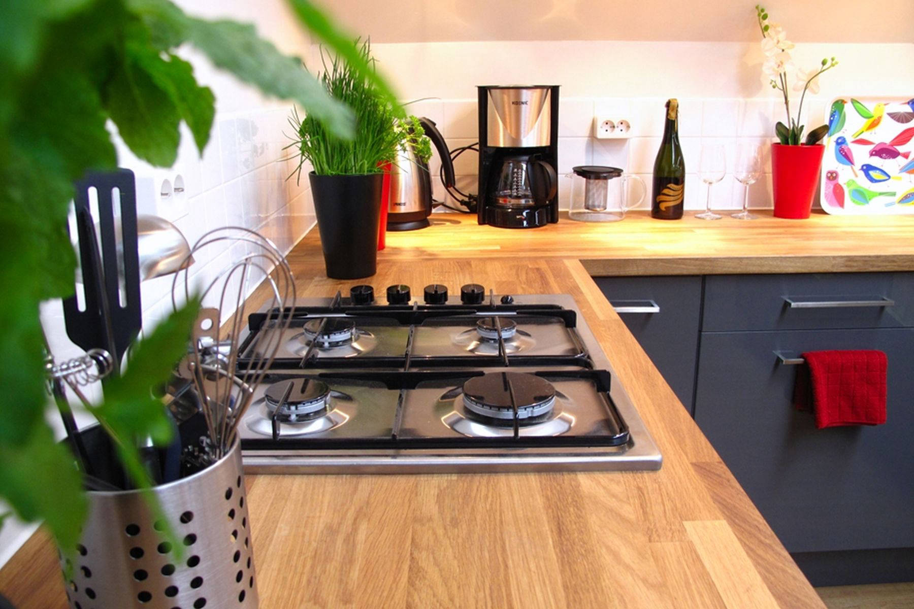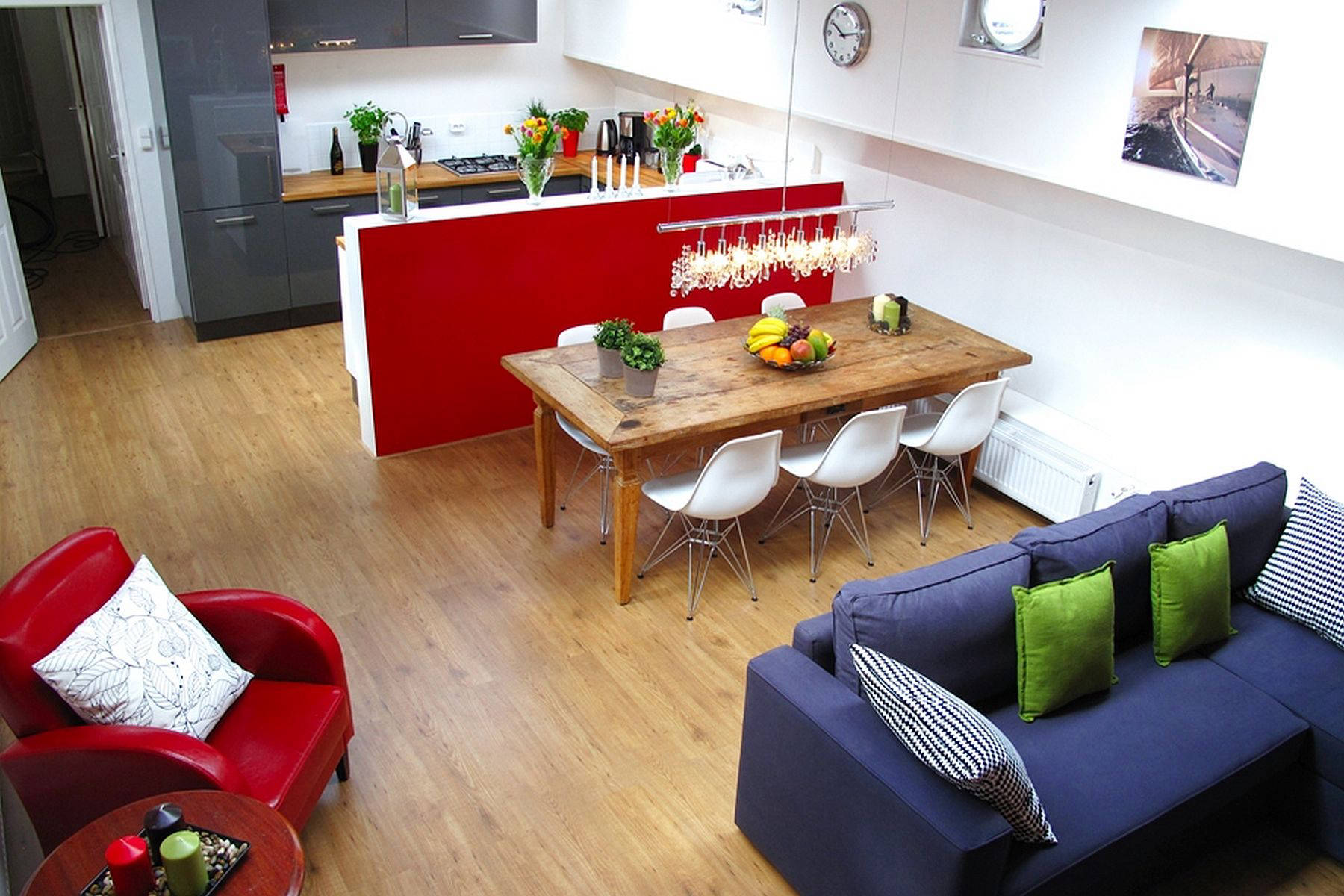 Het appartement heeft een eettafel waar je met acht mensen aan kunt zitten. Deze grenst aan de openkeuken. De keuken is voorzien van een vaatwasser, dubbele spoelbakken en een ruime koelvriescombinatie. Het appartement beschikt over drie slaapkamers: twee slaapkamers met elk twee eenpersoonsbedden die eventueel naar elkaar toe geschoven kunnen worden. In de derde slaapkamer staat een tweepersoons bedstee.
