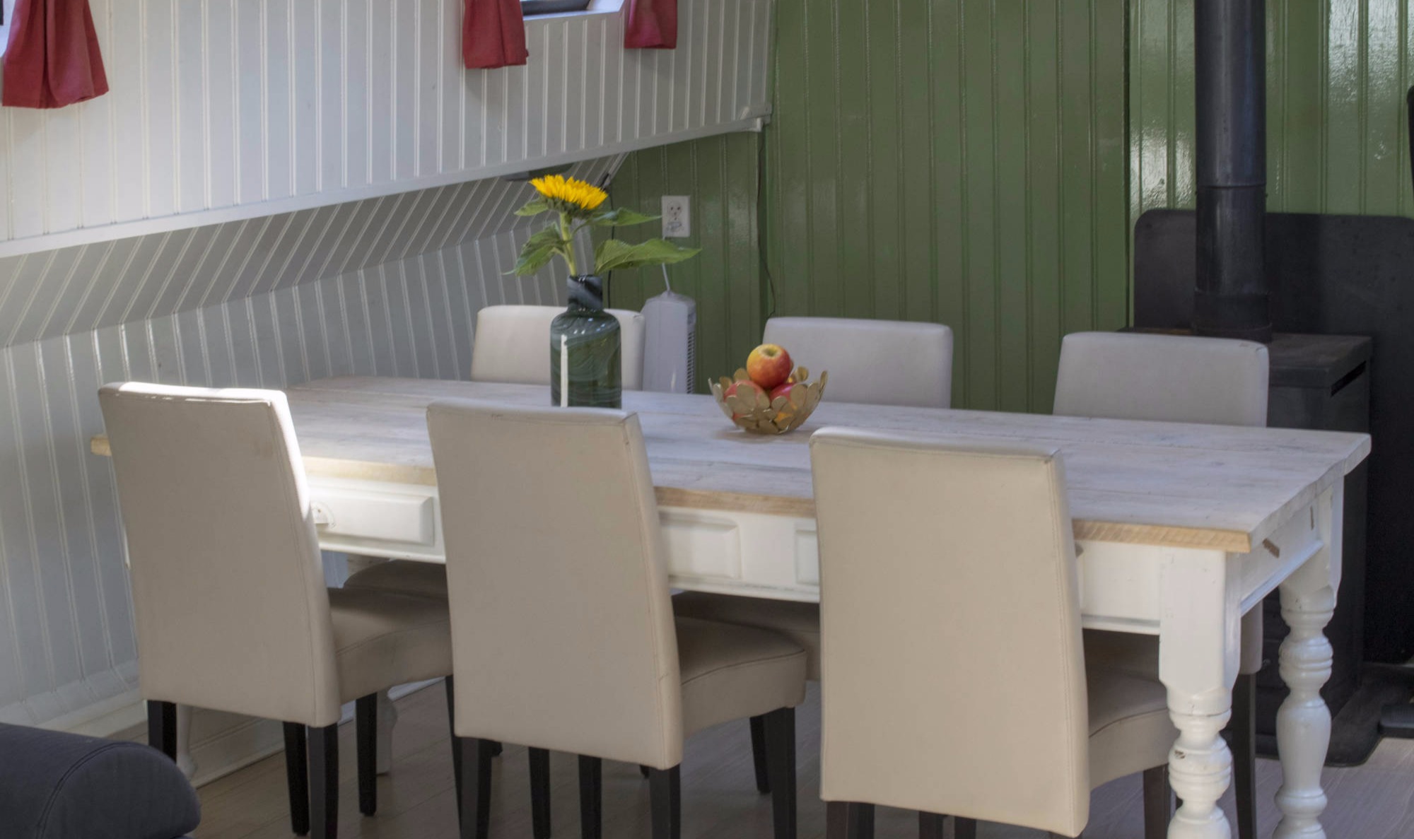 Er is een ruime salon met een grote houtkachel en een goed uitgeruste keuken. Er zijn drie mooie slaaphutten met tweepersoonsbedden en in de woonkamer is een slaapbank aanwezig. In de badkamer vind je het toilet en een douche en bad ineen.